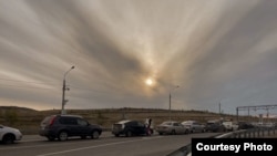Колонна едет в Монголию. Мужчины уезжают от мобилизации.