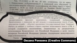 32-летняя Оксана Ронжина живет в маленьком шахтерском городке Осинники в Кузбассе. Недавно за опубликованную в инстаграме фразу "Гонят оккупантов, красавчики. Ничего не выйдет у злобного старого карлика, захватившего власть в РФ" ее обвинили в "дискредитации" российской армии. Эта фраза и украинский флаг сопровождали короткое видео, запечатлевшее людей на бронетехнике.
